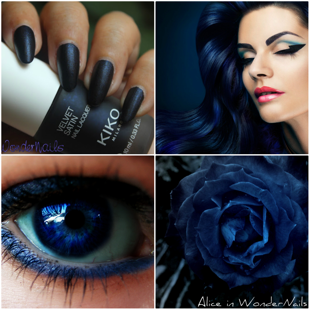 Eccolo il blu che ho scelto, è il Kiko Velvet Satin Midnight Blue 697, un blu scurissimo matt con micropagliuzze blu elettrico, maggiormente visibili se lo lucidiamo. Ve lo voglio mostrare in entrambe le versioni.